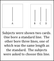 This was demonstrated by intended and unintended experiments in the twentieth century. They are probably the most famous experiments ever done in sociology, so there is nothing new here, but they deserve reflection. Solomon Asch showed the extent to which people will go along with a consensus view even if this means refusing to believe the clear—and, in other circumstances undeniable—evidence of their eyes. In the figure, which line—B, C or D—is the same length as line A? What about C? Not in the eyes of a person (with a few heroic exceptions) who finds himself in a minority of one in a group which (in collusion with the experimenter) insists otherwise. In another experiment, by Stanley Milgram, subjects were willing to torture others with powerful electric shocks “for research purposes” if instructed to do so by a person with apparent authority in a laboratory setting with the trappings of official endorsement.A49